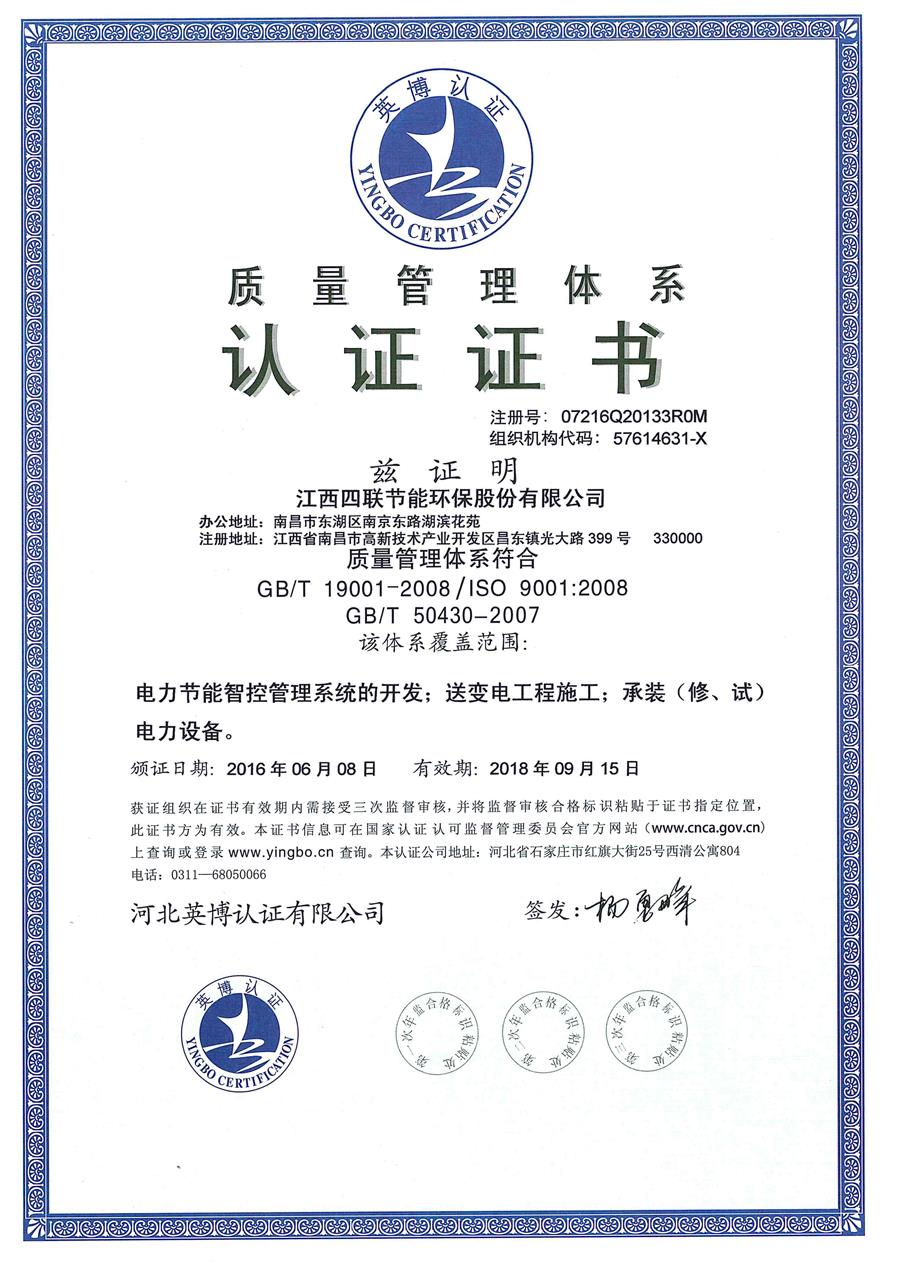 海星体育通过ISO90001质量管理体系认证